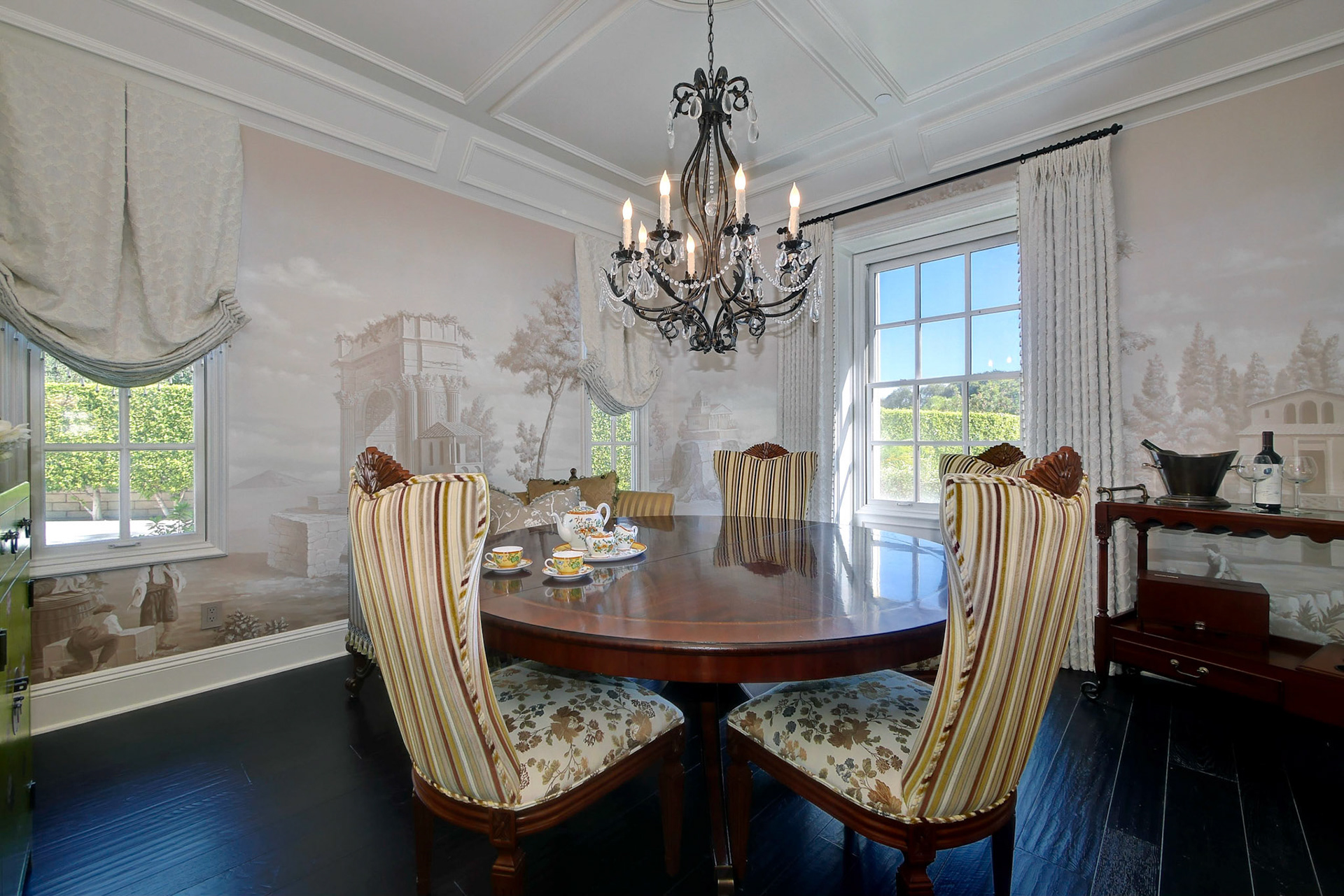 Italian influences mix with comfortable luxury to make this home elegant but family friendly. A hand-painted scenic mural wraps the walls of the dining room in warm sepia tones. A trompe l'oeil ceiling above the living room draws your eyes up in amazement. The oval entryway ceiling displays the subtle shimmer of Lusterstone and the family room is wrapped in a stenciled grass cloth wallpaper. Interior design by Saxony Design & Build, Inc.
